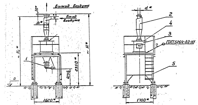 Диаметр циклонного элемента: 800 мм